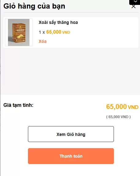Sau khi quyết định được sản phẩm và số lượng cần mua. Bạn cần thêm chúng vào giỏ hàng để tiến hành thanh toán. Ngoài ra, nếu muốn loại bỏ sản phẩm bạn không muốn mua ra khỏi giỏ hàng bạn có thể bấm vào "Giỏ hàng" sau đó bấm "Xóa" phía dưới sản phẩm.