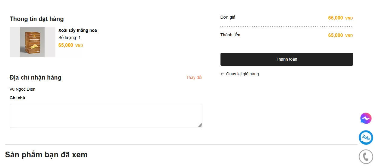 Để đặt được hàng, bạn cần điền đầy đủ thông tin cá nhân như địa chỉ, số điện thoại, email… để tiện việc liên lạc và nhấn chọn hình thức chốt đơn, hình thức vận chuyển bạn muốn. Sau đó nhấn “ Thanh toán” để xác nhận.